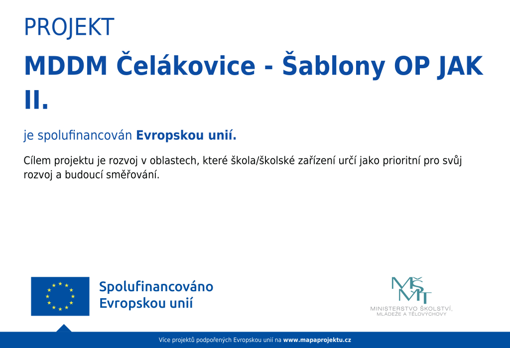 Naše škola realizuje projekt: MDDM Čelákovice - Šablony OP